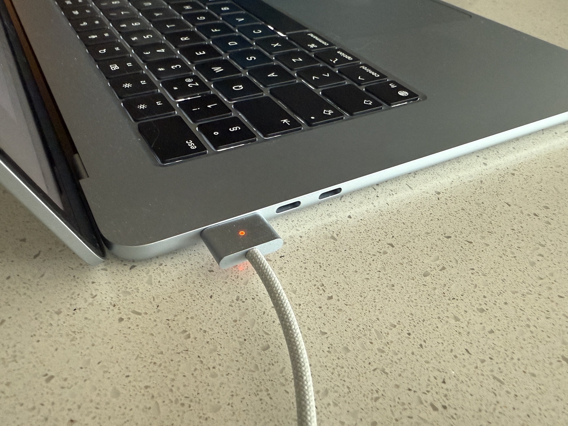Ett område där det verkligen märks skillnad mellan Air och Pro är hur många portar det finns. Här får man, förutom Magsafe-laddningsporten, bara två USB-C portar med Thunderbolt-stöd samt en 3,5 mm audioport. Man får alltså klara sig utan nätverkssladd, HDMI-port och minneskorts-läsare. Är det ett måste får man stå ut med att ha med sig adaptrar eller rent av en USB-hub.