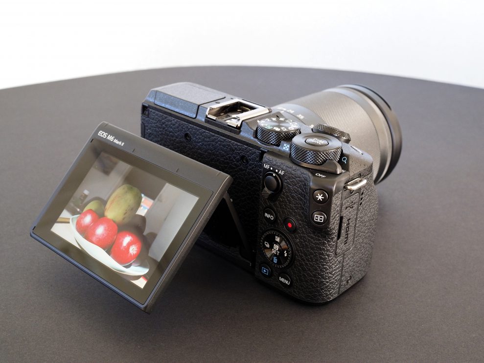Canon är ofta bättre än sina konkurrenter när det gäller att finputsa ergonomin. EOS M6 II är inget undantag. Den lilla kameran vilar skönt i handen tack vare ett litet men omsorgsfullt utformat grepp på höger sida. Två inställningshjul på toppen och en Func-knapp som aktiverar inställningar av viktiga funktioner – ISO, bildhastighet, fokusläge, vitbalans och EV-kompensation – underlättar väldigt för användarvänligheten.