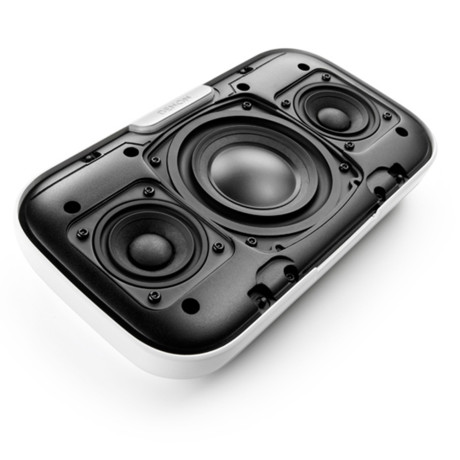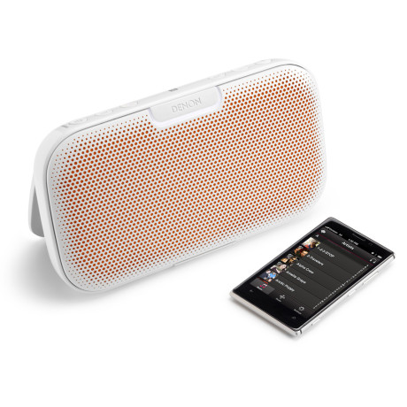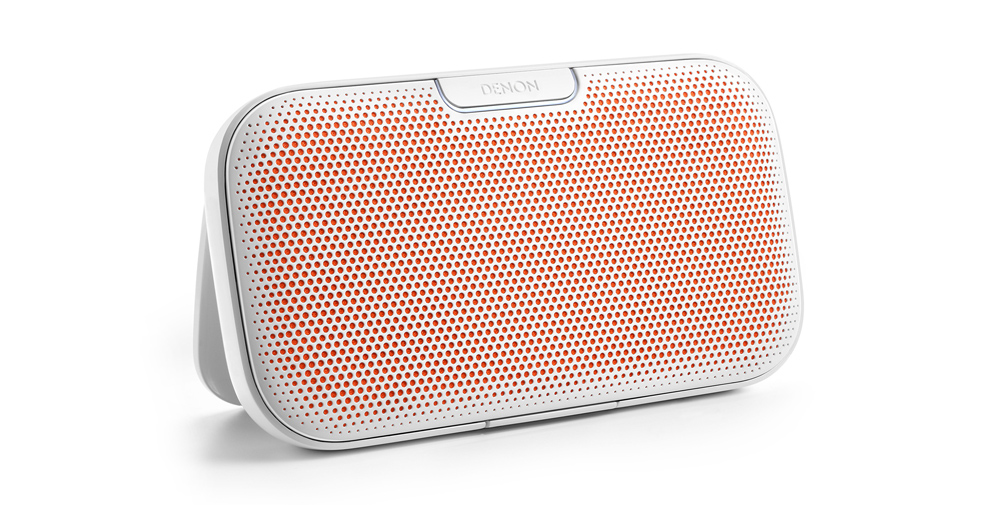 Denons högtalare är den största i testet och definitivt den tyngsta. Ett drygt kilo är lite väl mycket om man försöker resa lätt. Men å andra sidan är den platt vilket kan göra att den passar bättre i bagaget än en tjock rund högtalare. Den känns extremt solid med bra kvalitet på plasten och ett metallgaller i fronten. Tyget innanför kan bytas ut och fyra färger medföljer. Trycker man på baksidans urgröpning fälls ett stort stöd ut som gör att högtalaren står stabilt.