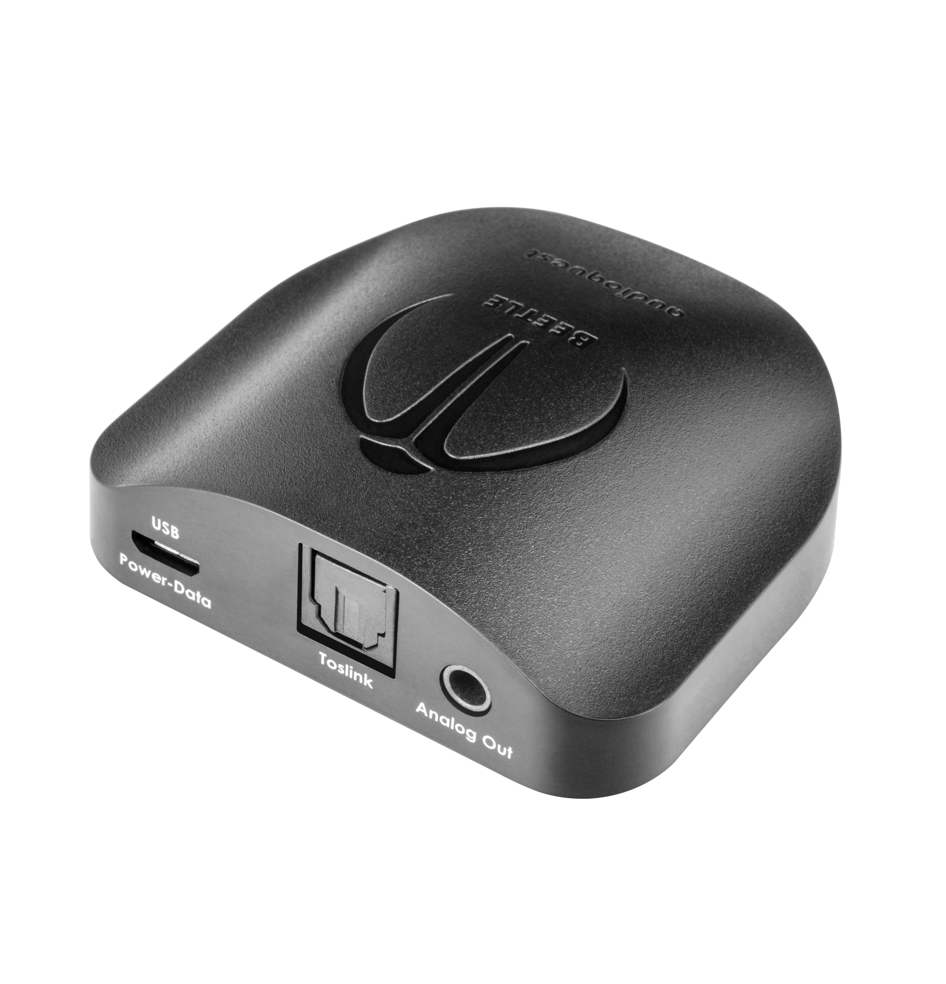 AudioQuest Beetle är en kompakt omvandlare som kan användas till många saker. Via mikroUSB-porten kan den användas med en dator eller mobil som har USB-utgång. En optisk ingång ligger nära till hands att använda med en TV eller en spelkonsol. Och sist men inte minst finns en inbyggd Bluetooth-mottagare.