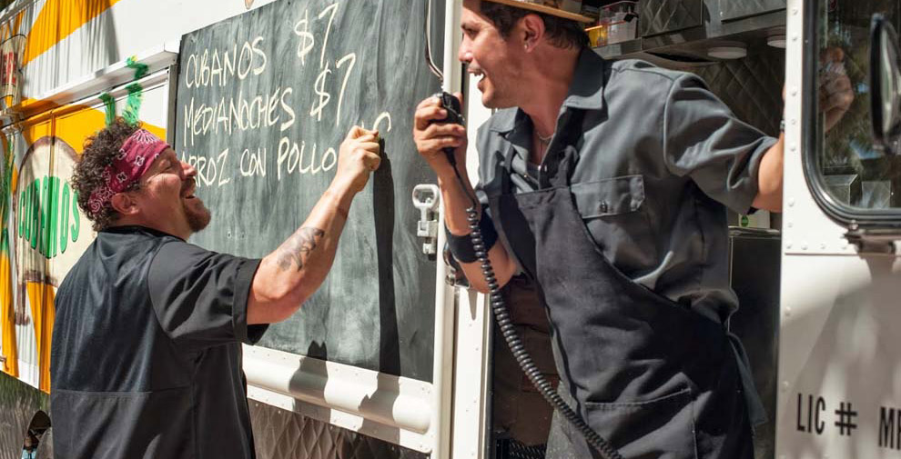 Med hjälp av hans exfrus (Sofia Vergara) exman (Robert Downey Jr) börjar han om sin karriär i en sliten matbil, och knyter samtidigt nya band till sin försummade 10-årige son.