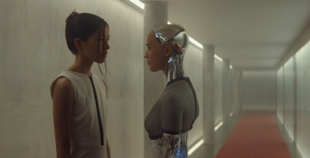 Garland har skrivit ett ofattbart bra manus som sätter igång en tankeprocess hos såväl de tre huvudpersonerna som hos publiken. Tankarna som diskuteras är djupa och välformulerade, utan att det känns vare sig dumt eller klyschigt. På samma gång får vi bevittna ett enastående kammarspel mellan den svårt alkoholiserade chefen och den unga, asociala datornörden. Karaktärerna kompletterar varandra och båda rolltolkningarna är i toppklass! Allt ackompanjeras elegant av en nedtonad Alicia Vikander som ställer svåra frågor tillbaka till sin skapare/fångvaktare/forskare.