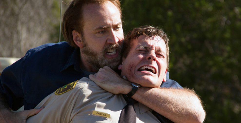 - Med: Nicholas Cage, Tye Sheridan, Gary Poulter, Ronnie G. Blevins, Adriene Mishler, Brian Mays