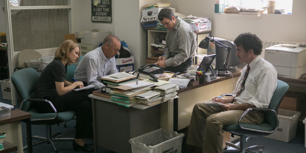 De grävande journalisterna leds av Michael Keaton, med sig har han ett team som består av Mark Ruffalo och Rachel McAdams, samt Stanley Tucci som arbetar som advokat för de många offren. På många sätt upprepar Ruffalo sin roll som grävande journalist från Zodiac, och bemästrar rollen med intensitet, realism och elegans, medan Michael Keaton återigen visar vilken stor skådespelare han är. Filmens spänning är det metodiska och långsam grävandet som redaktionen gör och allt motstånd och hemlighetsmakeri de stöter på – allt tyder på att mörkläggningen sträcker sig upp till allra högsta nivå.