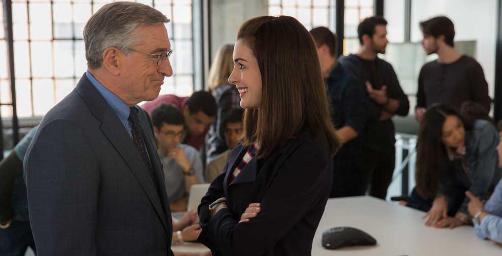 Nancy Meyers (The Holiday) har skrivit och regisserat denna komedi som berättar historien om den pensionerade änklingen Ben (Robert De Niro) som anställs som praktikant på ett företag som ägnar sig åt e-handel med modekläder. Den ambitiösa och plikttrogna chefen Jules (Anne Hathaway) är inte särskilt intresserad av honom, men så småningom visar det sig att Ben har mycket erfarenhet att bidra med – både på och utanför jobbet.
