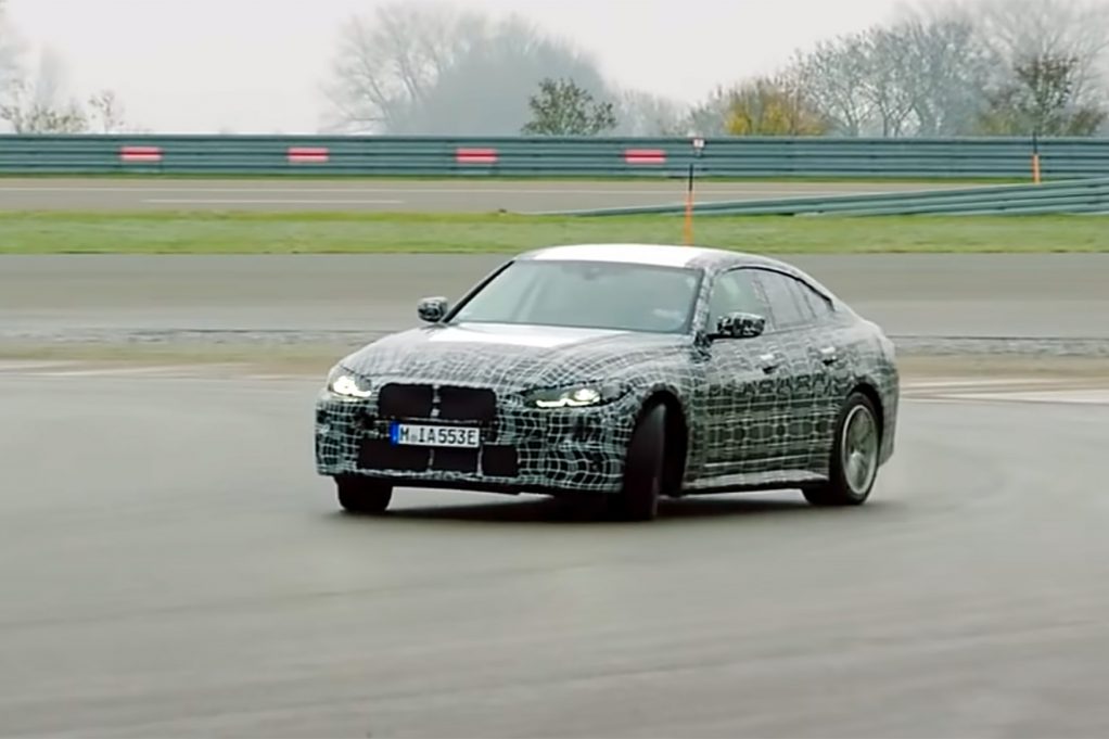 Här visar han hur en i4 beter sig på BMW:s testbana i Aschheim och bilen han kör närmar sig produktionsstart och påstås vara redo för att beställas under 2021.