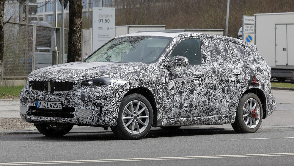 BMW iX1 blir den elektriska versionen av lilla X1, som redan finns som hybrid. De första bilderna av den kamouflerade elversionen visar en bil som har samma proportioner, men baktill sticker det inte ut några avgasrör.