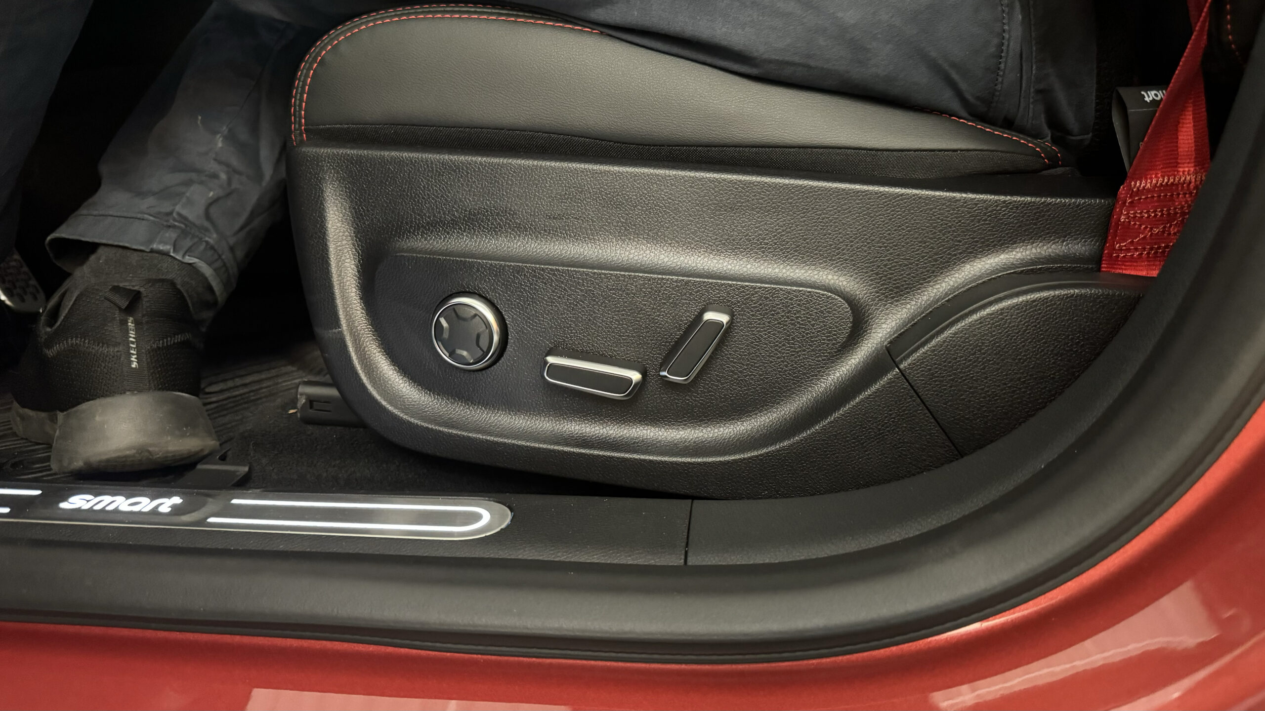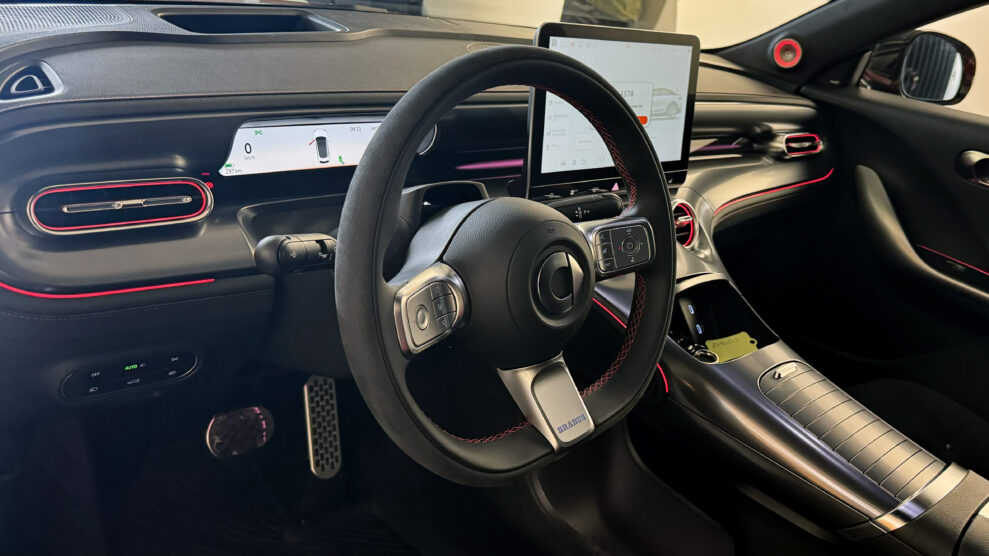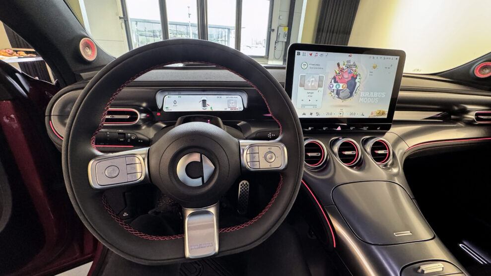 Där Brabus-versionen är röd med svarta detaljer på utsidan, är den svart med röda detaljer på insidan. Personligen tycker jag att det är coolt med röda säkerhetsbälten mot de svarta, ventilerade framsätena.