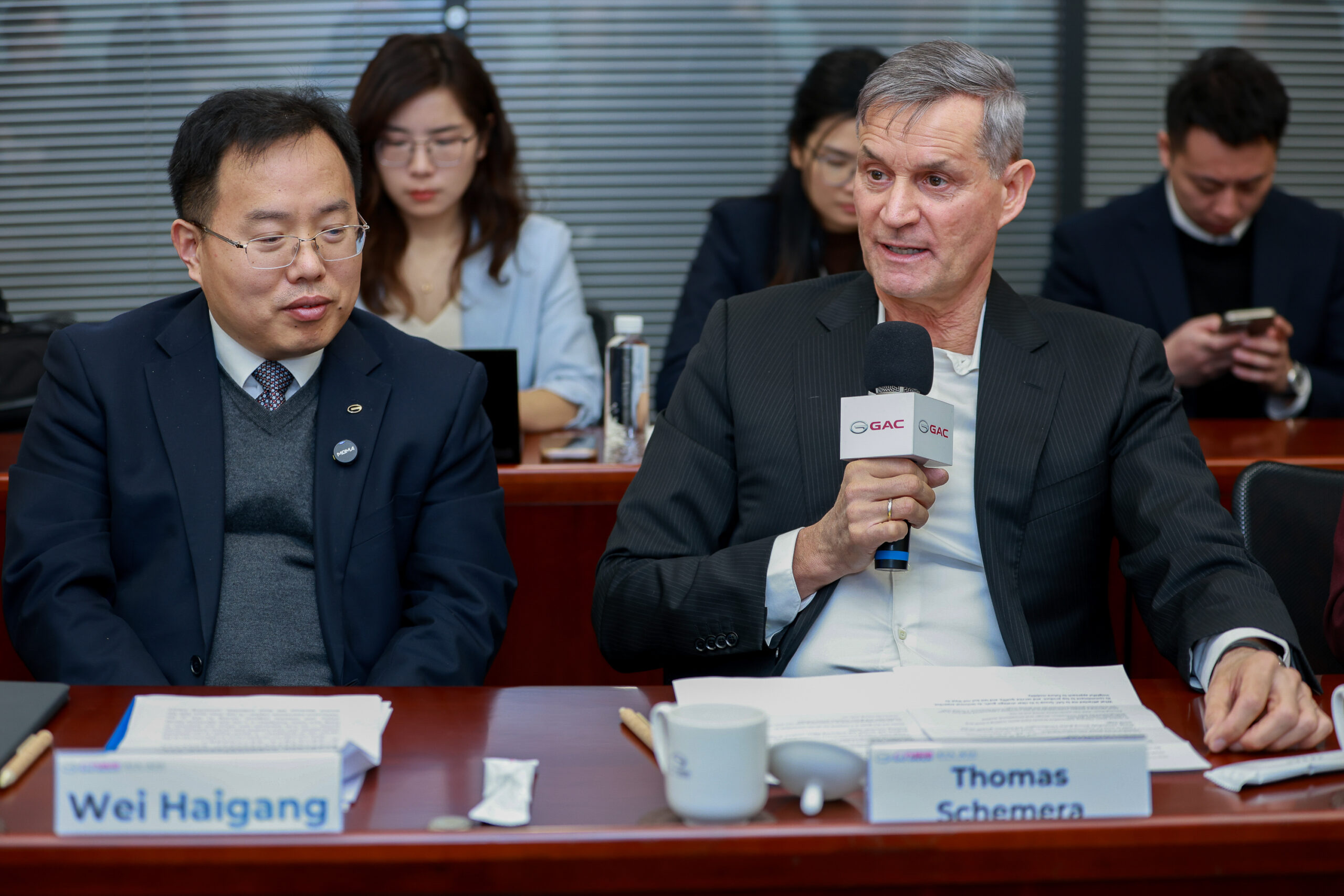 Wei Haigang, chef för GAC International, och Thomas Schemera, Global COO och tidigare på BMW och Honda, berättar om ett GAC som, till skillnad från många andra kinesiska varumärken, förstår vikten av ett varumärke i Europa. En marknad som de kallar ”kritisk” för GAC. De konstaterar att deras varumärke måste byggas upp under en lång tid och att målet med lanseringen inte är försäljningsvolym från början, utan snarare att marknadsföra GAC.