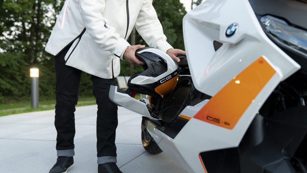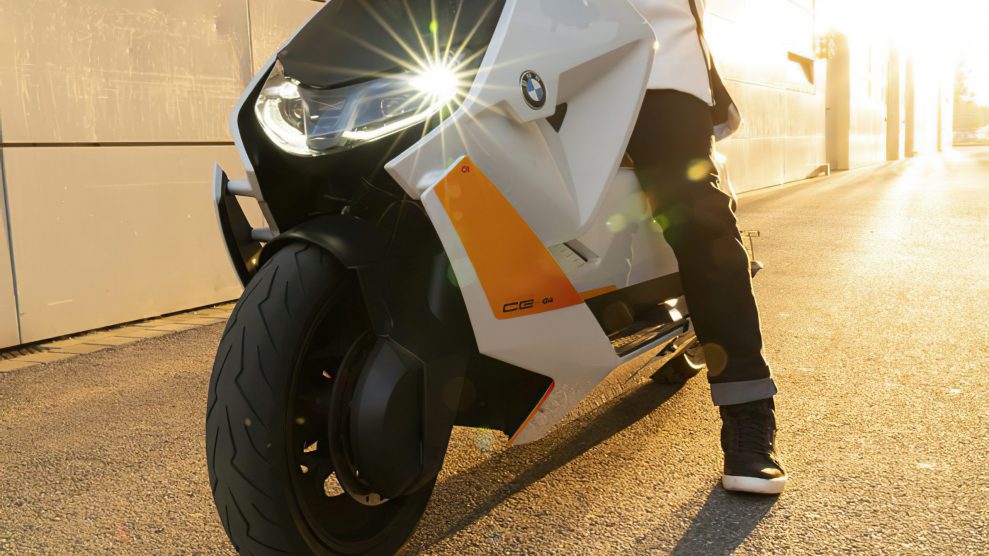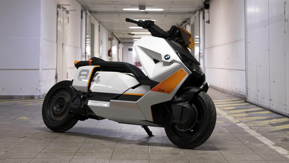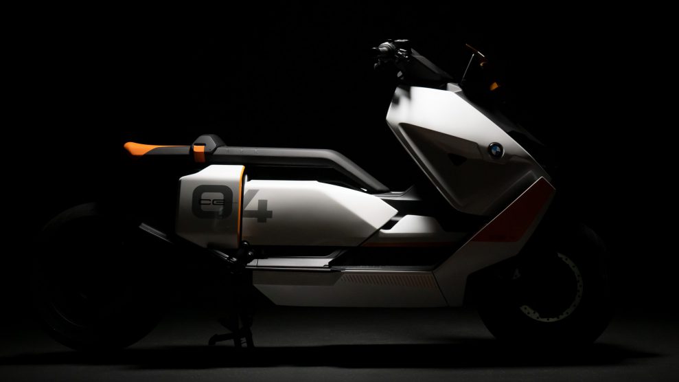 Mopeden med det långa namnet Motorrad Definition CE 04 har en lång, låg profil, och det kantiga utseendet påminner lite om hur de på 1980-talet trodde att framtidens fordon skulle se ut. Om den hade varit grå och smutsig, kunde den ha varit med i en Mad Max film.