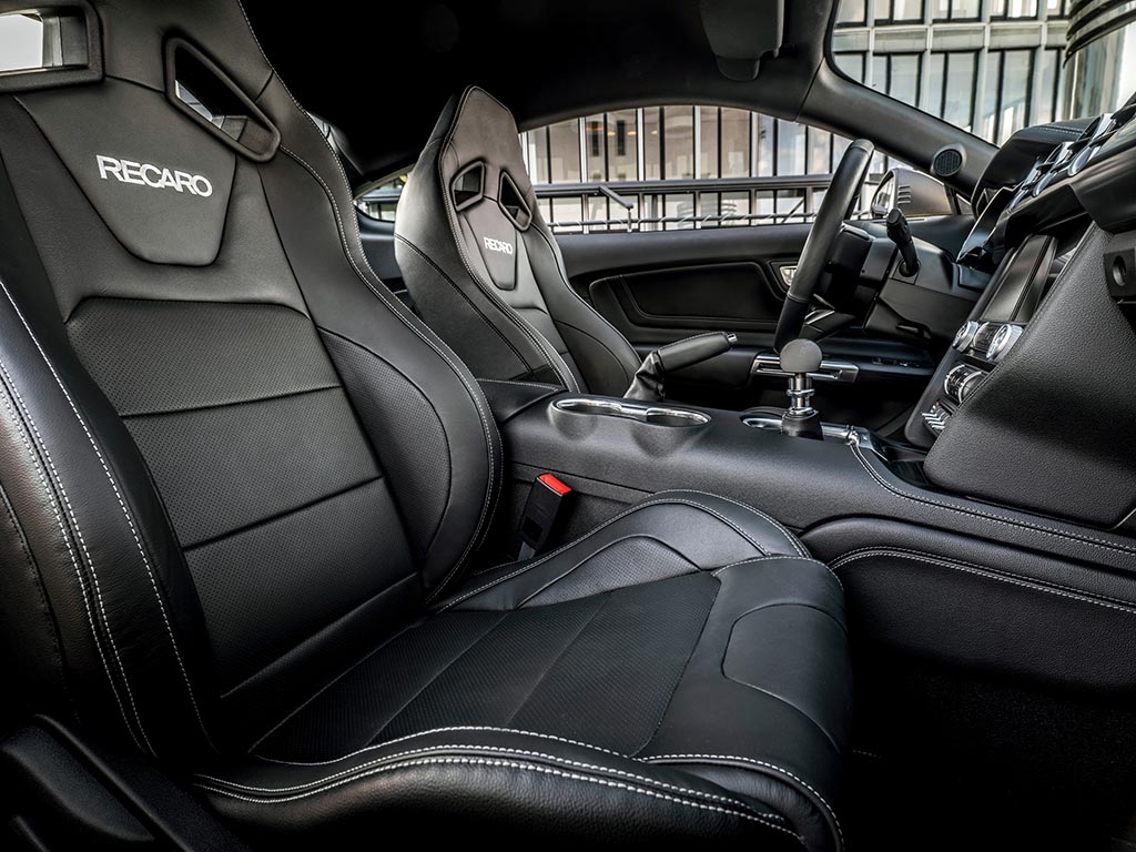 Precis som sig bör för en äkta muskelbil kan den beställas med en manuell växellåda (TREMEC 3160 med varv-matchning för sömlös nedväxling). Det är ganska så sällsynt 2021. Alternativt kan den utrustas med Fords egen 10-växlade automatväxellåda. Vi vet vilken vi hade valt!
