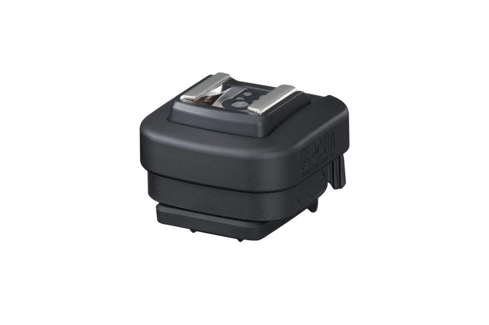 Blixtskon upptill har en multikontakt i änden som kan kommunicera med, och ge ström till tillbehör, till exempel mikrofonförstärkare.