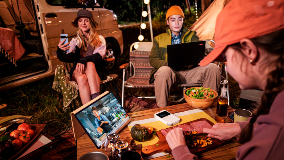 Det finns två inbyggda antenner och routern stöder Wi-Fi 6E – inklusive 6 GHz-bandet, vilket bör innebära snabbare trådlös nätverksanslutning. Upp till 20 enheter kan anslutas samtidigt. Det inbyggda batteriet har en kapacitet på 8 000 mAh, vilket motsvarar upp till 28 timmars helt trådlös användning.
