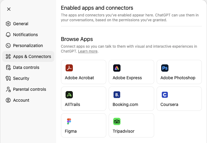 - Gå till Settings > Apps & Connectors.