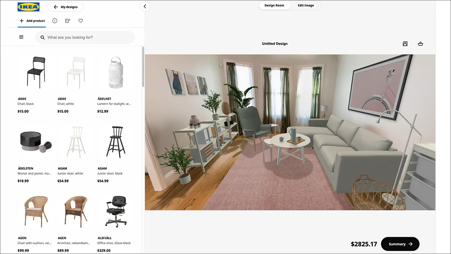 AI-algoritmen förvandlar skanningen till en interaktiv 3D-modell. Här är det möjligt att ta bort befintliga möbler, lägga till nya och göra om inredningen efter önskemål. Och skulle man behöva möbler från den välkända möbelaffären under inredningsprocessen kan man lägga de utvalda produkterna i inköpskorgen, eller dela inredningsförslagen med vänner och familj.