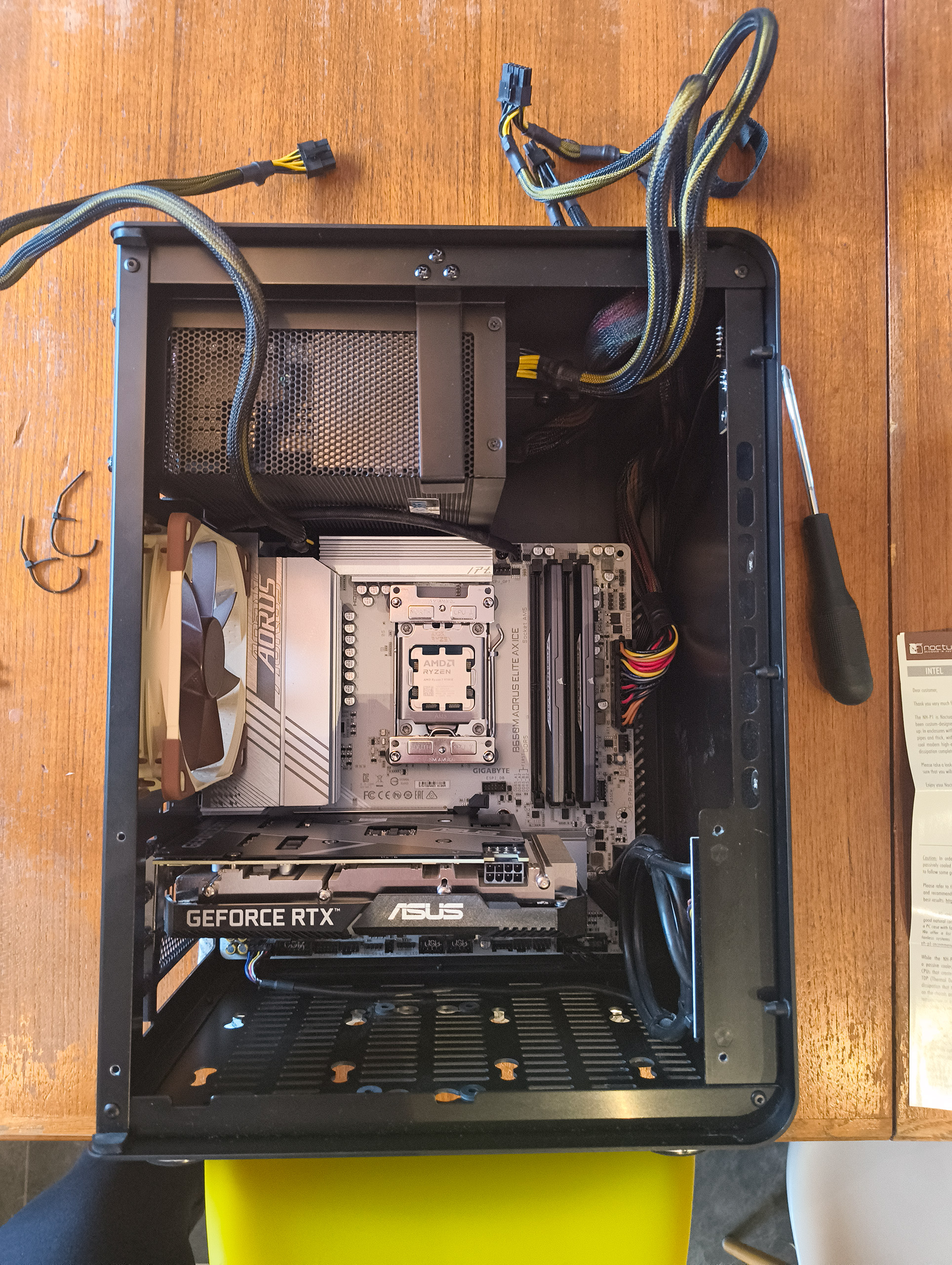 Jag måste säga att jag blev mycket förvånad av hur enkelt det var. I datorn fanns en två år gammal SSD som jag helt enkelt tog bort och monterade på det nya moderkortet tillsammans med den nya processorn (det blev ett byte från en Intel Core i7 6700 till en AMD Ryzen 7 9700X) och minnen.