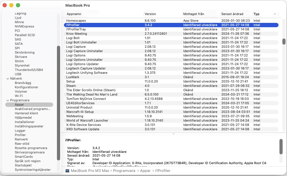 För att slippa leta, håll ner Option och klicka på Apple-menyn, välj Systeminformation. Under Programvara, välj Appar. Sortera på kolumnen Typ så ser du samma kategorier som ovan.