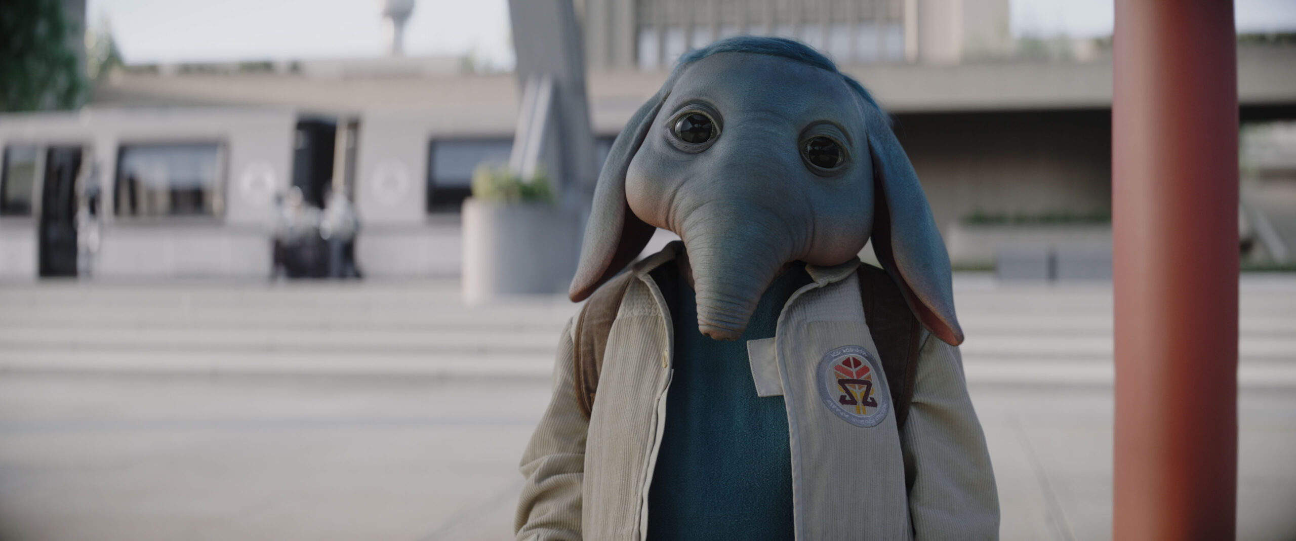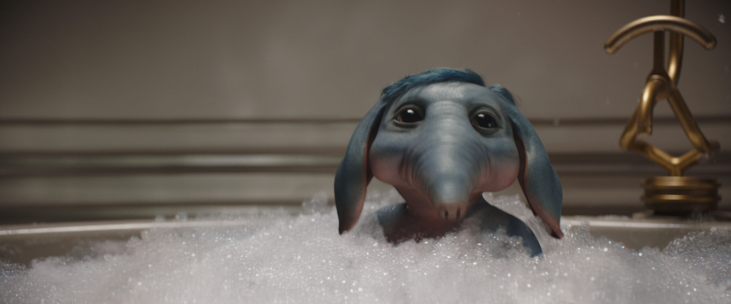 Unge Wims (Ravi Cabot-Conyers) bästa vän är den blå elefanten (!) Neel.
