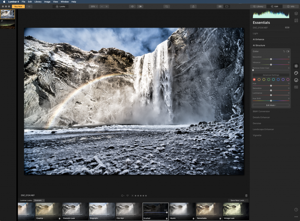 Luminar kan även användas för normal bildredigering och har ett antal färdiga filter som man kan lägga på bilderna och justera själv efteråt. Redigeringsmöjligheterna är inte lika stora som i Capture One eller Adobe Photoshop Lightroom, men är väldigt enkla att använda.