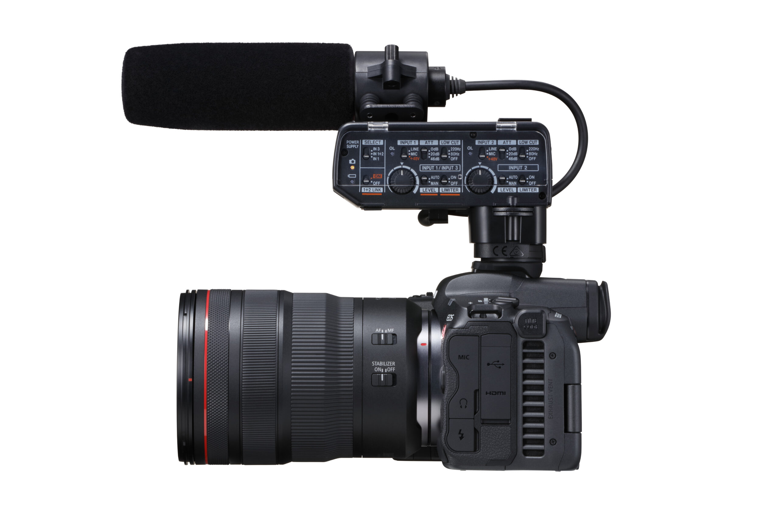 Kameran kan även användas för VR-inspelning, med Canons nya RF 5.2mm F2.8L Dual Fisheye-objektiv, som med två set med linser kan spela in video som kan användas till VR efteråt.