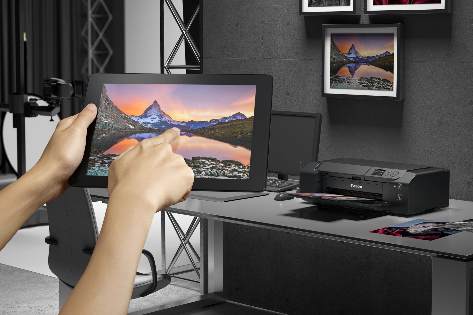 Den kan även skriva ut panoramabilder och levereras med Canon Professional Print & Layout, ett fristående program för kontroll över utskrifterna.