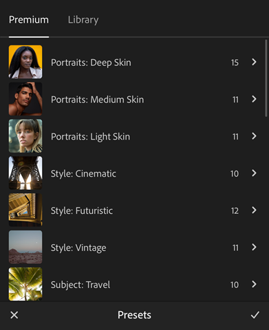 I Lightroom har det dykt upp Premium Presets, som är färdiga ”filter”-funktioner. Nytt är också Edit Collaboration, där man kan dela bilder i Lightroom mellan olika plattformar – Windows, MacOS, iOS och Android.