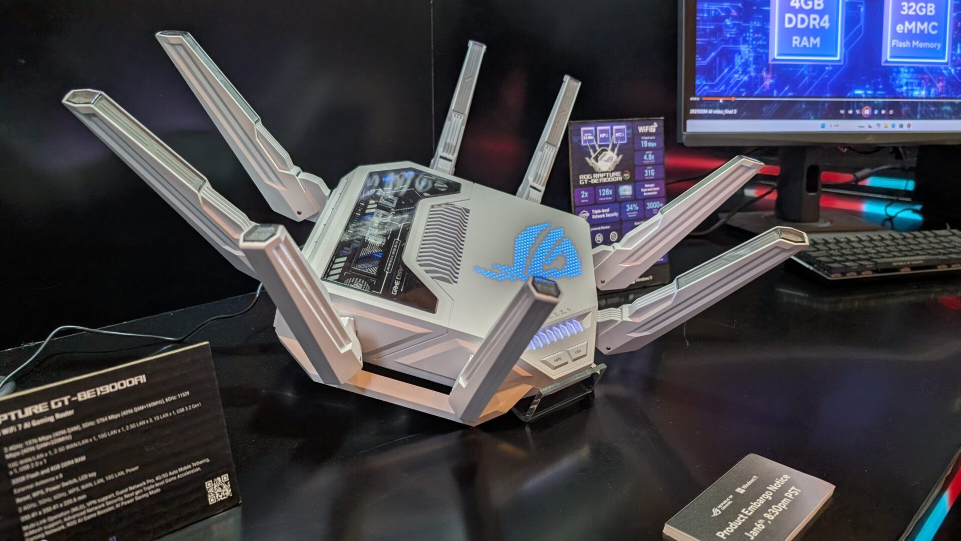 Till och med routrarna har fått en dos AI. Vi såg detta i ROG-rummet (Republic Of Gamers) hos Asus på CES i Las Vegas. Routern Rapture GT, med namnet BE19000AI (artikelbilden), har inbyggd AI som kan användas för att ge hackare mer intelligenta motåtgärder. Den kommer garanterat att väcka nostalgiska cyberpunk-minnen till liv. Routern kommer inte att döda hackare som i Neuromancer, men den ser tillräckligt ond ut.