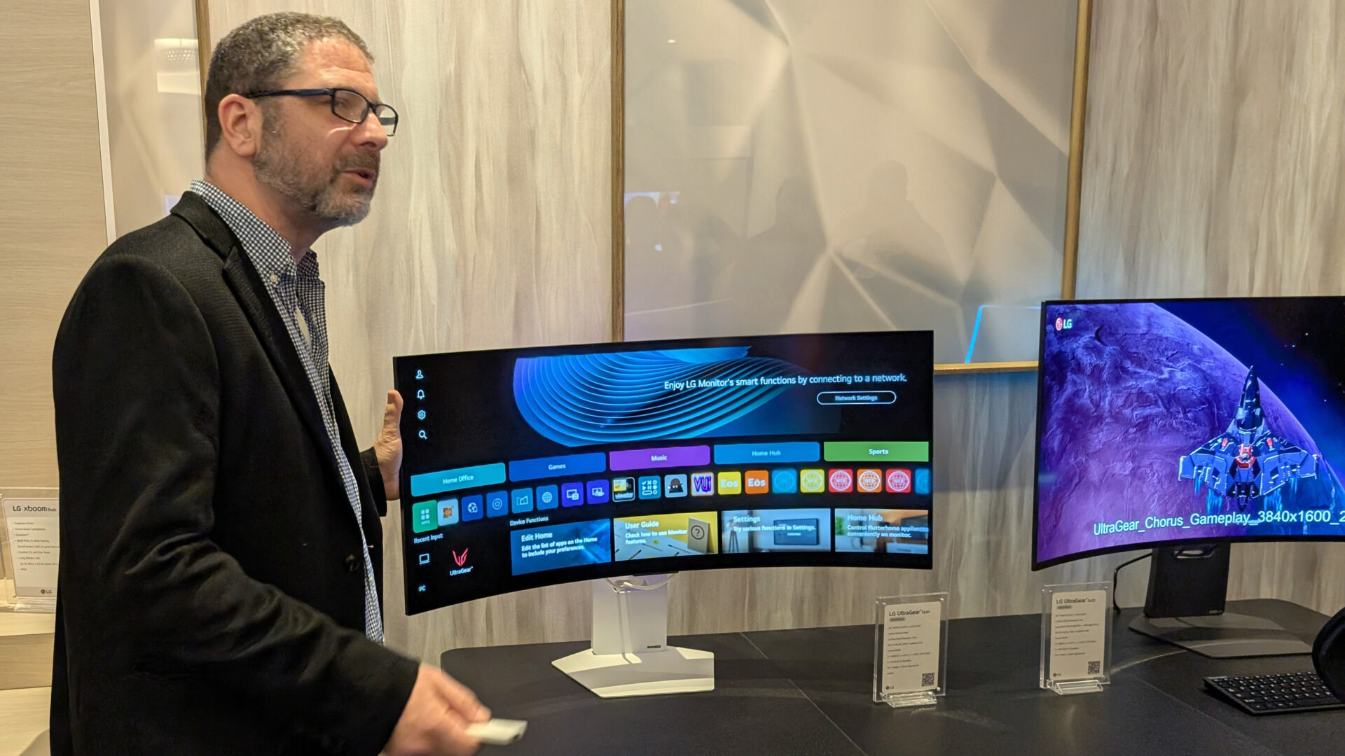LG Electronics (LG) spänner bokstavligen musklerna när det gäller OLED-gamingskärmar på CES-mässan i Las Vegas. De gör det med LG UltraGear GX9-serien, som omfattar två mer eller mindre böjda 45-tums monitorer och en allt-i-ett smart gamingmonitor som drivs av LG webOS.
