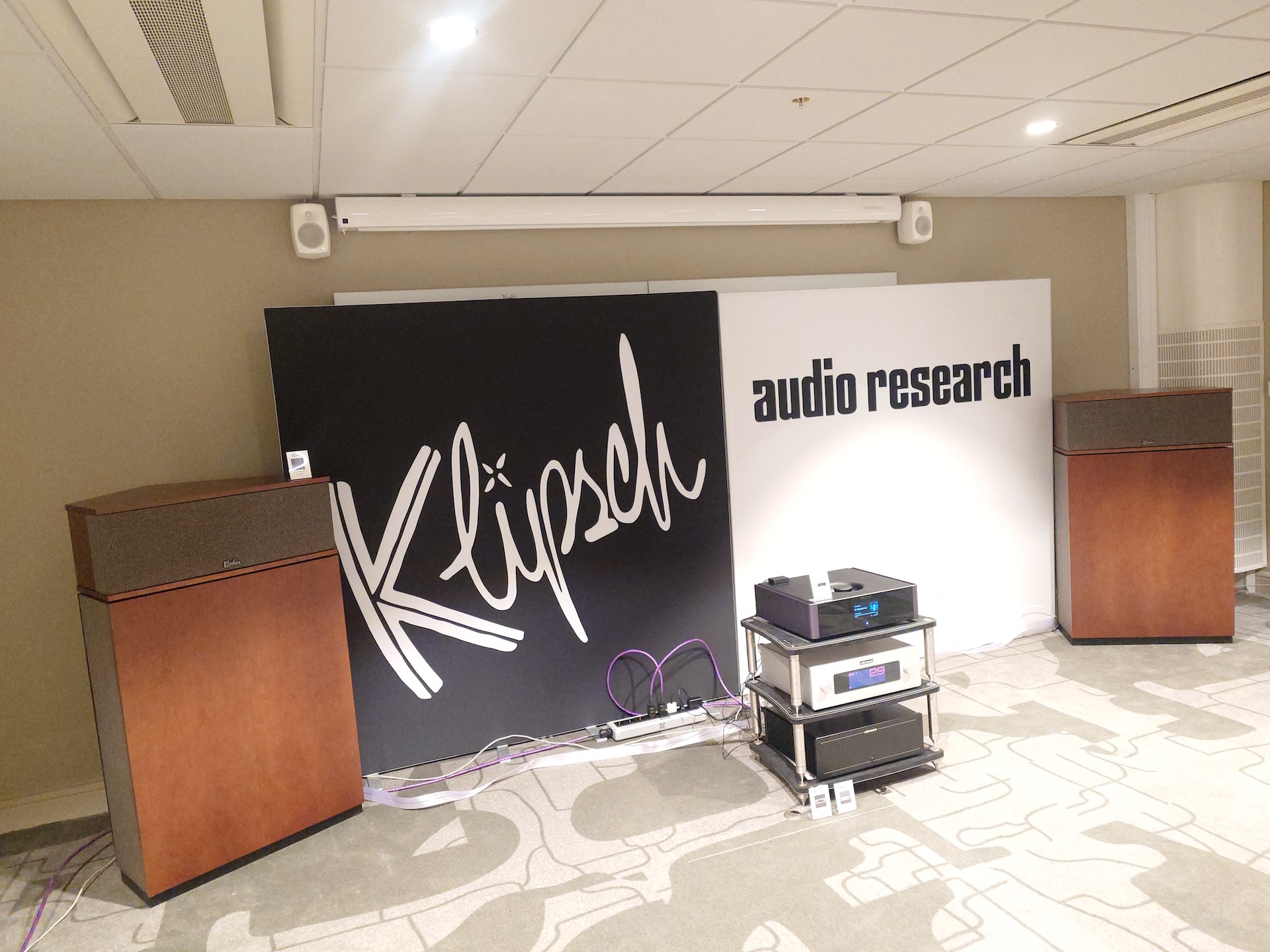 Den stora stjärnan hos CapTech/Canseda, var föga förvånande Klipshorn AK7 med en prislapp på 338 000 kronor, med benäget rörbistånd från Audio Research samt Rotels toppmatade Michi Q5-CD-spelare.