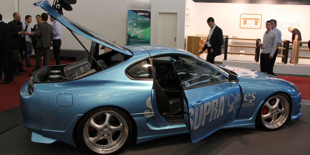 Jörgen Wahlsberg från Supra visar den nya platta kabeln Flat 1.6, som är enkel att montera och kan tejpas fast med en medföljande övermålningsbar tejp. Billigt är det också!