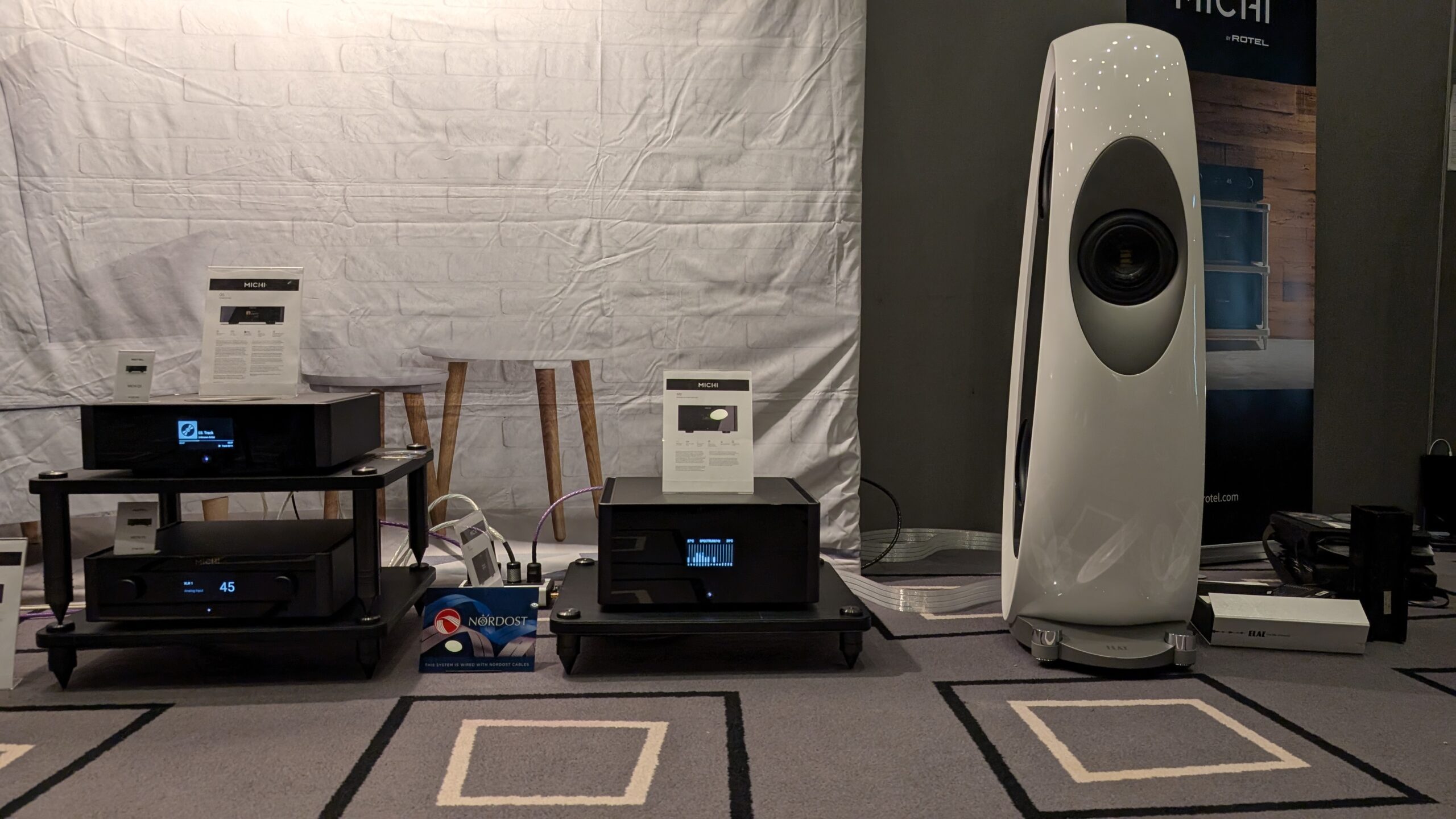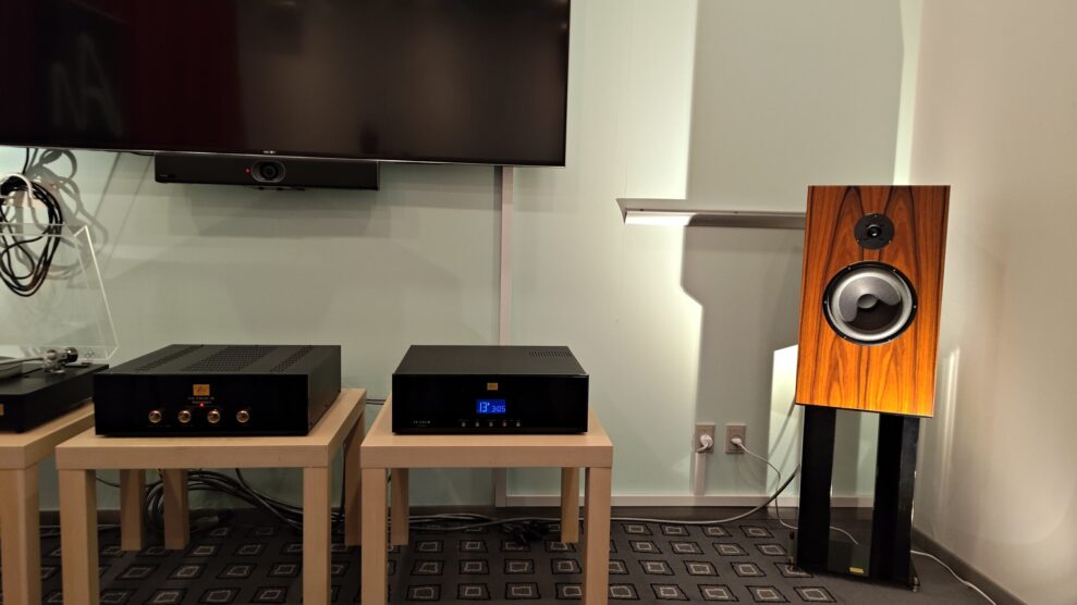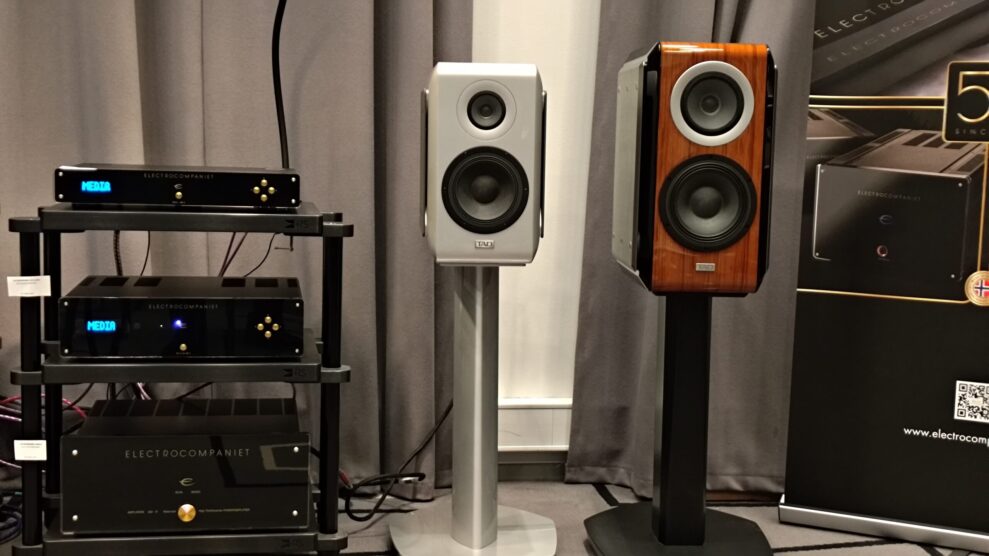 TopSound kunde stoltsera med en Europapremiär. Det var kompakthögtalaren TAD ME1TX. Vi fick också en pratstund med Takehito Sekiguchi, som rest från Japan med högtalarna. TAD, som ingår i Pioneer-koncernen, grundades för att tillverka högtalare för professionellt bruk, men tillverkar även högtalare för hemmabruk. Högtalarna presenterades med elektronik från norska Electrocompaniet, bland annat den massiva monoförstärkaren AW800M, som också kan anslutas i stereo genom att ta bort bryggkopplingen. Det lät lovande och mycket dynamiskt.