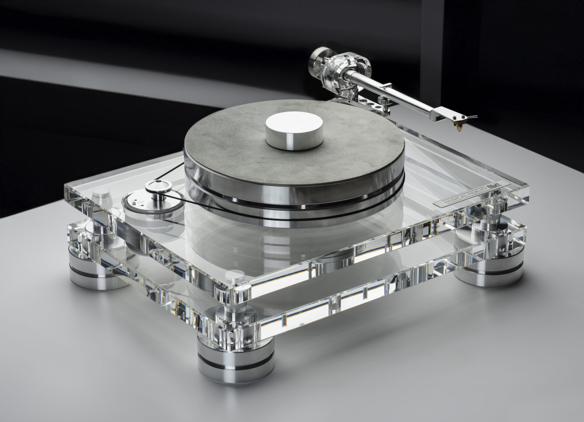 Nyheten om Musical Fidelitys nya skivspelare är som déjà vu till 2004. Då lanserade de en spelare som ser nästan exakt ut som den nya M8x TT. Två fyrskårade plattor i transparent akryl, en massiv skivtallrik med remdrift och en rak tonarm.