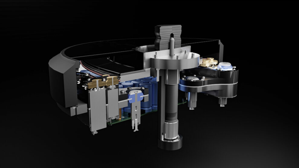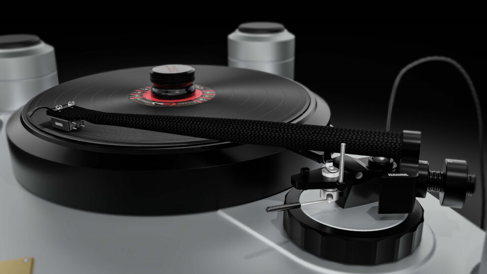 Själva tallriken är också en kritisk del av skivspelarens konstruktion, eftersom den är länken mellan LP-skivan och drivverket. Här har Nagra forskat på olika material och till skelettet fastnade de för en legering som används inom flyg- och rymdindustrin. Närmare bestämt ett material som heter Exium AM, som inte innehåller järn men som ändå har nästan samma masstäthet som gjutjärn (och 60 procent mer än titan). Och dessutom ”extrema dämpningsegenskaper”, enligt Nagra själva. Materialet kan bara formas till önskad form genom snabb rotation i en centrifugalgjutmaskin.
