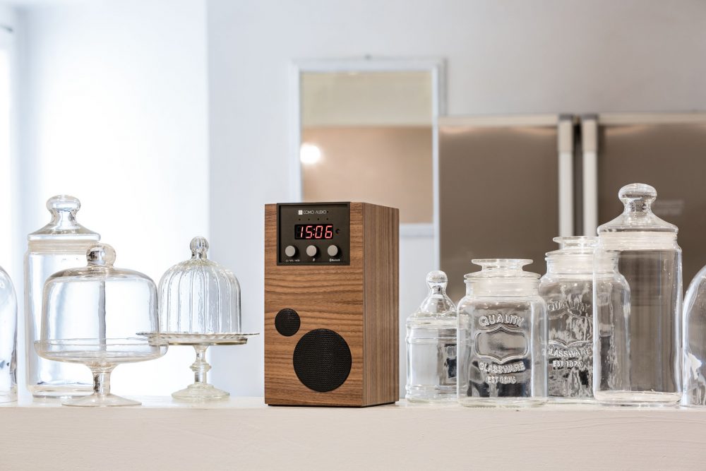 Högtalaren är inte bara trådlös, det inbyggda batteriet gör den bärbar också så att man kan ta den med sig in från balkongen och ställa den på köksbänken eller nattduksbordet. Där man använda den som väckarklocka.