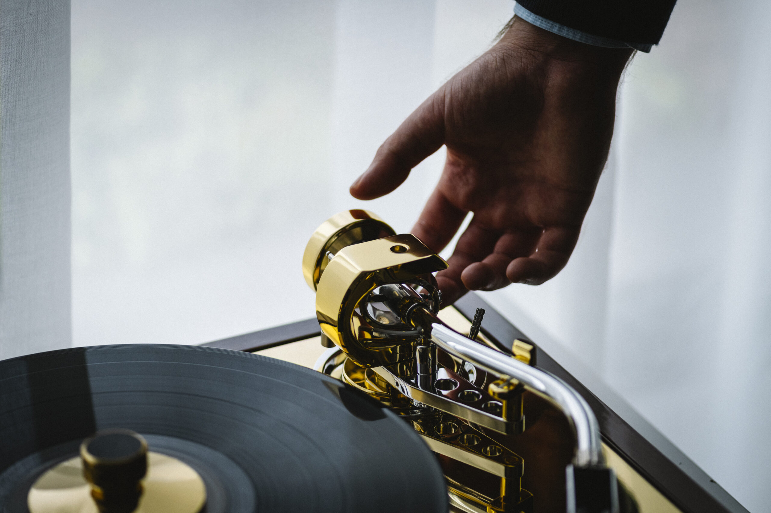 Bland annat levereras den med en ny pickup som byggts av Ortofon för Vienna Philharmonic Orchestra Anniversary-projektet, och spelaren finns i en vacker förgylld färg med ett kabinett i akaciaträ, eller i polerat stål med ett kabinett i svart pianolack.
