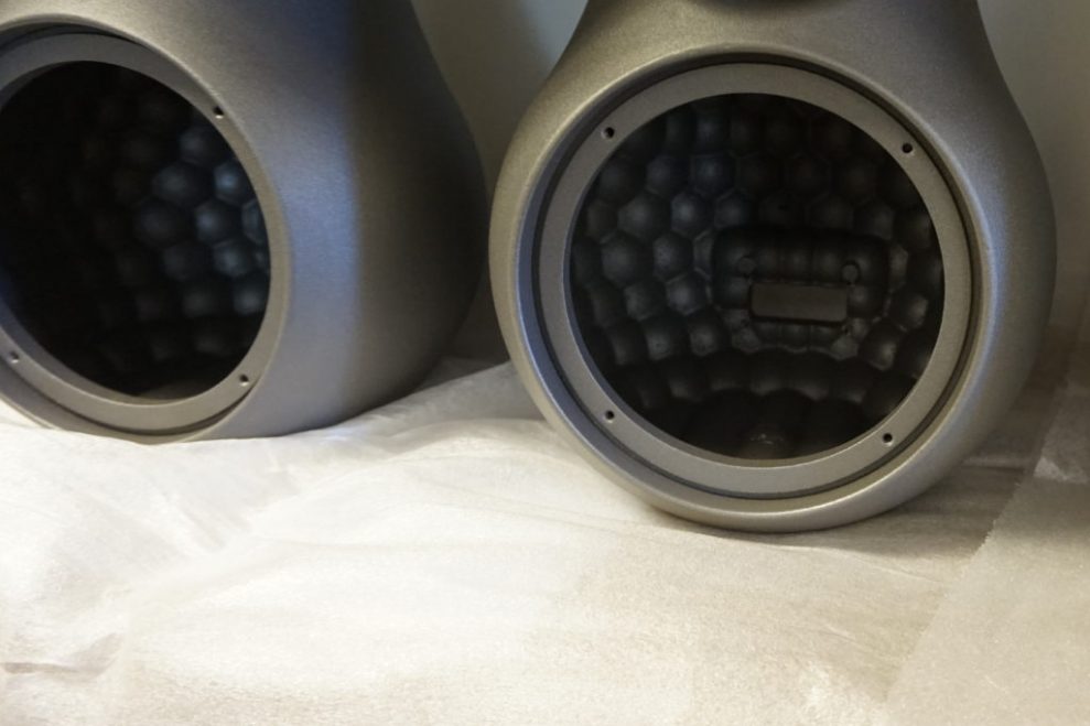 När gjutformen väl är ritad i CAD-programmet spelar det i princip ingen roll om högtalaren är lådformad eller har en rund form med komplicerade detaljer på både in- och utsidan, som är fallet här. Det flytande järnet fyller hålrummet i formen lika lätt.