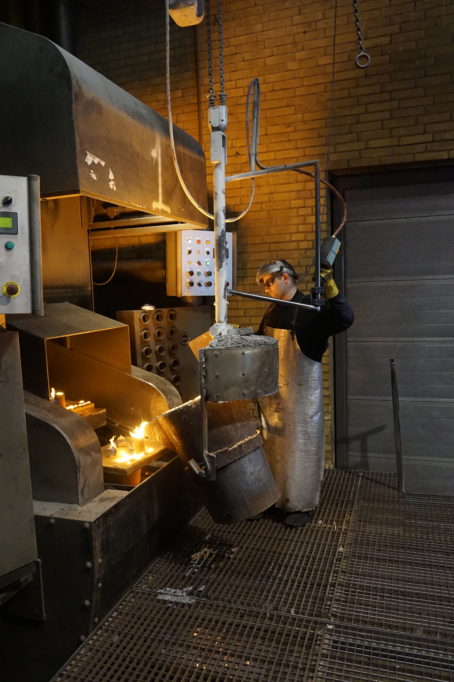 Järnets egenskaper bestäms av de ämnen som ingår i legeringen. I gjuteriet finns behållare med koppar, zink, mangan och molybden sida vid sida – som kryddor på en kryddhylla. Genom att tillsätta exakta kvantiteter får man de egenskaper som behövs. Precis som ett recept på en maträtt – fast här är soppan 1 450 grader varm!