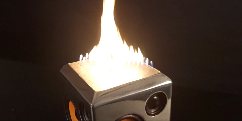 Här är en video som visa hur högtalaren sprutar eld i takt med musiken. Det är nog ingen tvekan om att den blir festens mittpunkt. En brinnande högtalare lär göra succé på sena sommargrillfester!