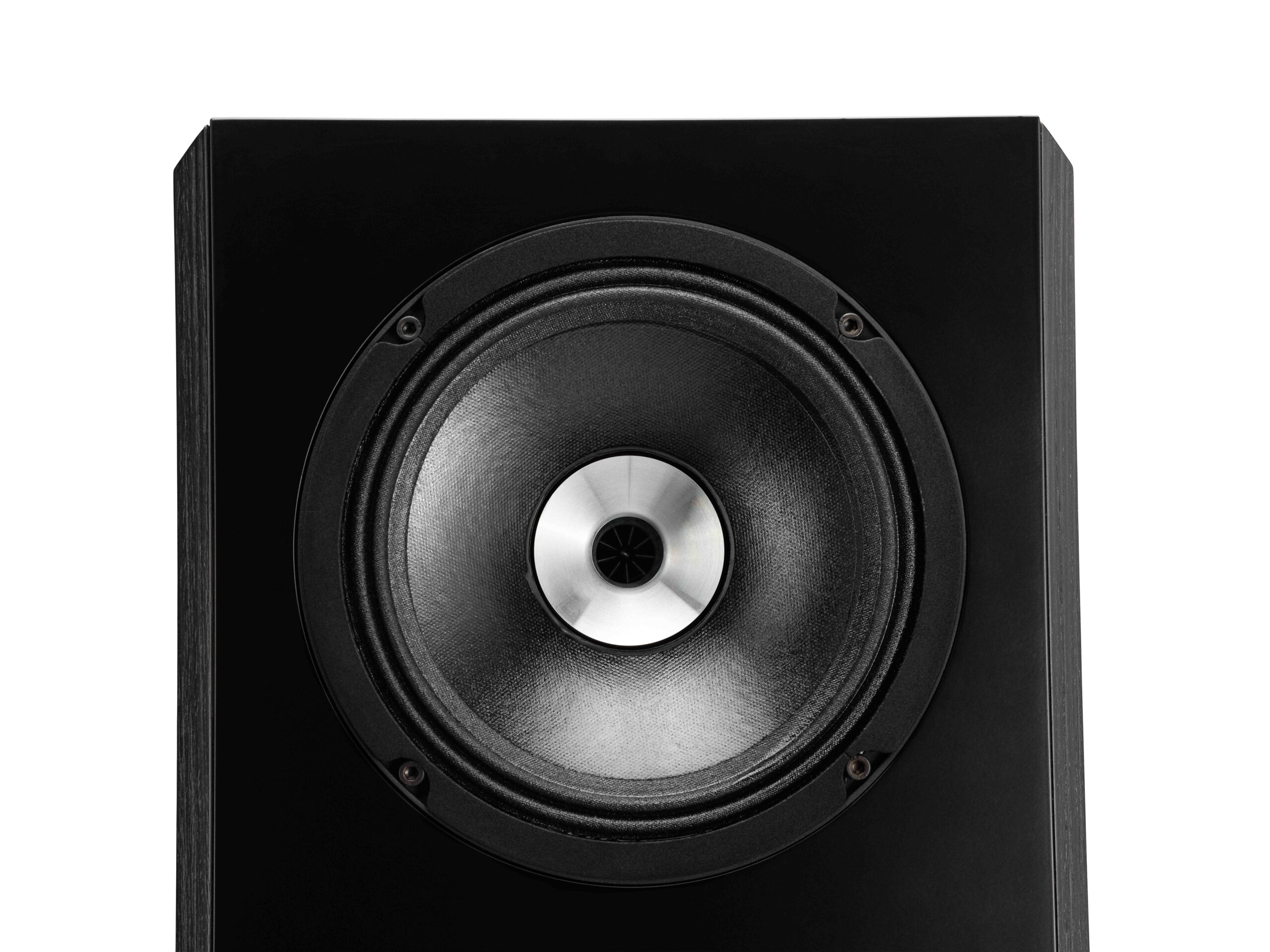 Detta är också det enda element som är synligt framifrån, men på baksidan gömmer sig två kraftfulla 8-tums baselement! Placeringen är lite ovanlig, men sägs ha valts för att minska interaktionen med rummet.