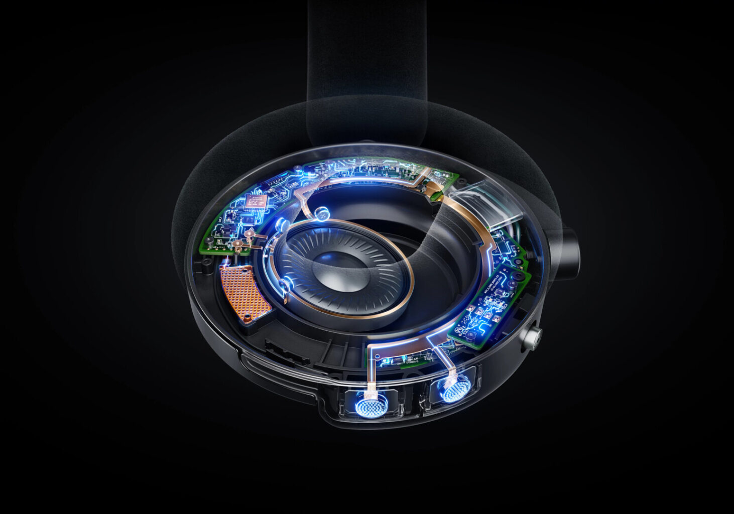 Dyson OnTrac använder åtta mikrofoner som samplar ljud 384 000 gånger per sekund och kontinuerligt reglerar brusreduceringen. Brusreduceringen och andra inställningar kan ses och justeras i en app, MyDyson, som många redan känner igen från Dysons andra appstyrda produkter.