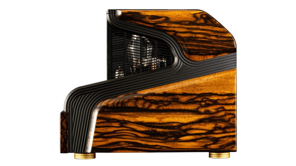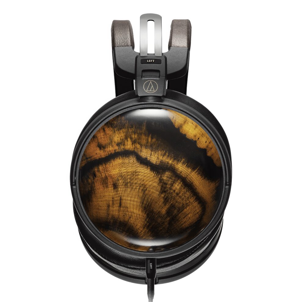 På bilderna ser förstärkaren ut lite som en gammal skrivmaskin – eller kanske som hälften av ett antikt dragspel? Den har sidopaneler i Kurogaki-trä, ett sällsynt och värdefullt träslag som valts för sina unika visuella egenskaper. Och inte minst dess akustiska egenskaper, som får större värde i de medföljande slutna hörlurarna, AW-KG NARU. Som också säljs i lösvikt i en begränsad upplaga under namnet ATH-AWKG.