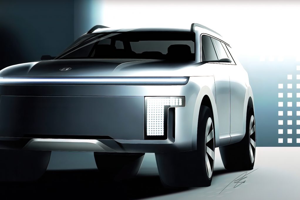 Där Hyundai Ioniq 5 tävlar i medelstora SUV-segment med Volkswagen ID.4, Skoda Enyaq iV, Ford Mustang Mach-E, blir Ioniq 7 större. Tänk mer Tesla Model X. Ioniq 7 får tre rader med sittplatser, med upp till sju platser totalt.