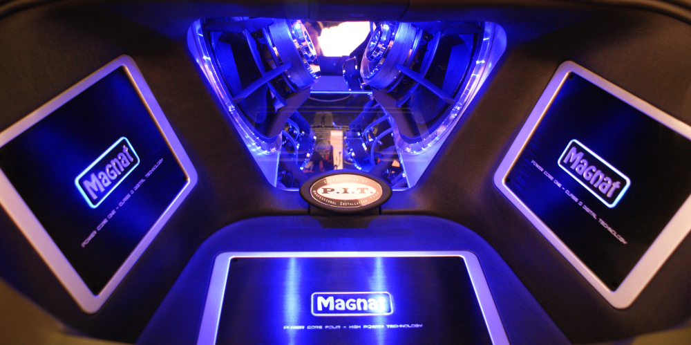 Tyska Magnat lockade folk med massor av bas, massor av blått ljus (se översta bilden) och de absolut största fälgarna jag sett på en Chevrolet Corvette.