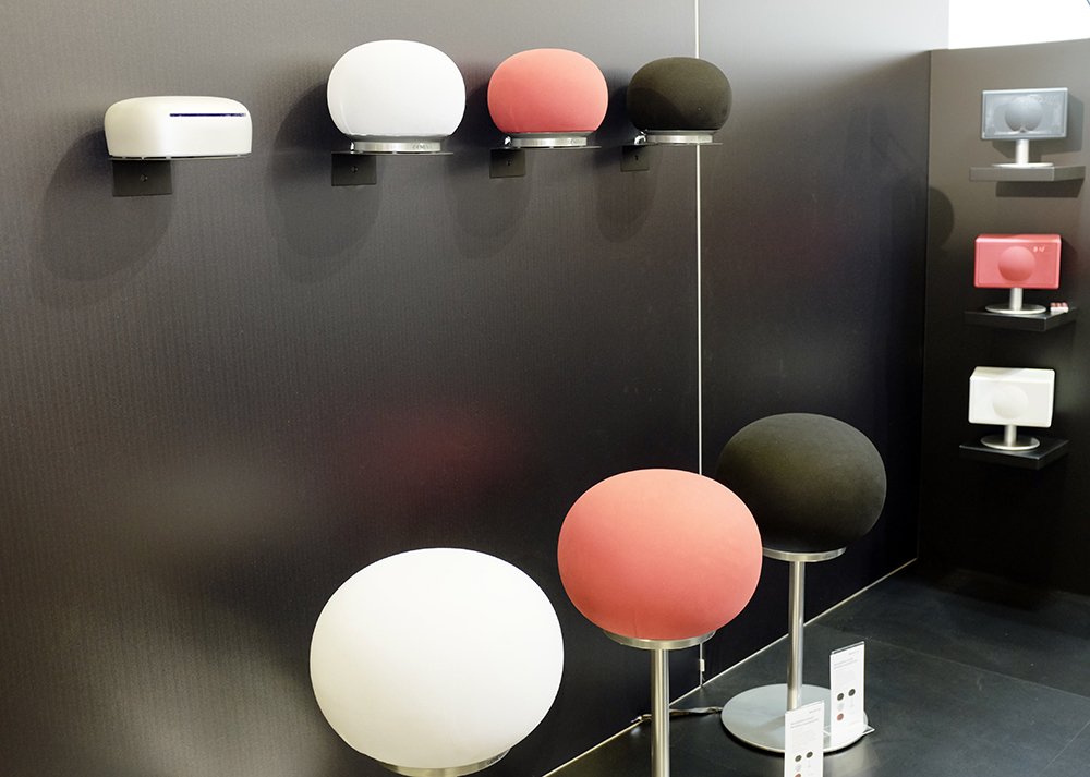 Aerosphere heter de runda och trådlösa högtalarna som finns i två storlekar. Den minsta är en monohögtalare i svart, rött eller vitt som kostar strax över 3 000 kronor och den stora är en stereohögtalare med flera element som är riktade framåt och en 6,5-tums bas längst upp.