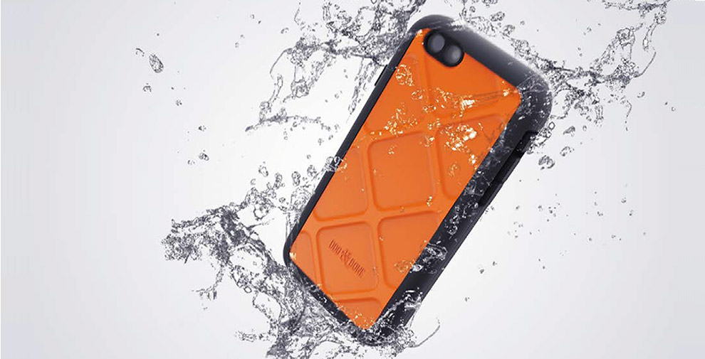 100 % vattentätt skal gjort av extremt tåliga material. Telefonen ligger i ett gummiskal och spänns fast i ett plasthölje så att skärmen fortfarande är helt fri. Testat för att klara 2 meters djup i 30 minuter. Framtaget för skidåkning, vandring, fiske och liknande aktiviteter.