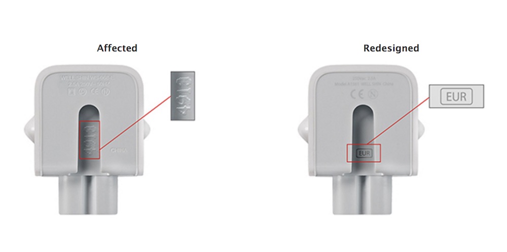 I ett pressmeddelande har Apple meddelat att de frivilligt återkallar nätadaptrar som är avsedda att användas i Argentina, Australien, Brasilien, Kontinentaleuropa, Nya Zealand och Sydkorea. I ytterst sällsynta fall kan berörda kontakter med två stift gå sönder och orsaka risk för elektriska stötar. De berörda enheterna levererades tillsammans med Mac-datorer och vissa iOS-modeller mellan 2003 och 2015 och ingick också i Apple World Travel Adapter Kit. 12 incidenter är kända på världsbasis.