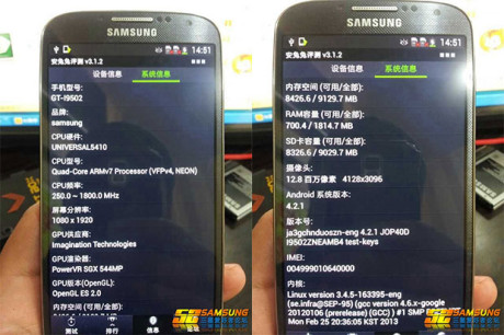 För det första passar modellnamnet, som vi sedan tidigare har hört ska vara GTI95000, och bilderna visar också att telefonen har en Full-HD-skärm med 1080p-upplösning, 2 GB RAM, Android 4.2.1 samt en kamera på 13 megapixlar, vilket också stämmer med de rykten vi hört tidigare.