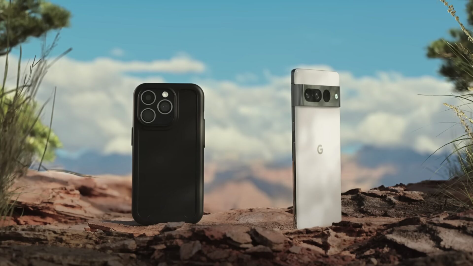 Två mobiler pratar med varandra medan de njuter av utsikten – en Apple iPhone och en Google Pixel. Och rollfördelningen ska inte missförstås. Den gamla iPhone beklagar sig över alla saker den inte kan göra och kommer ihåg de gamla goda tiderna när folk köade i timmar för att köpa den.