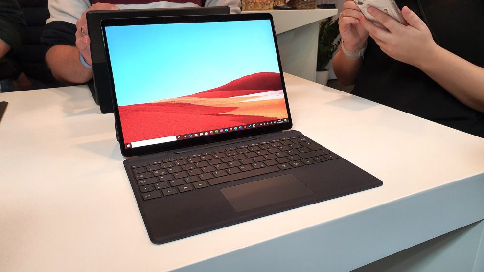 Det fick vi däremot göra med produkterna som släpps nästa månad. Microsoft Surface Laptop 3, Surface Pro 7, Surface Pro X och Microsofts första in-ear-hörlurar, Surface Earbuds, var redo att fotograferas och provas efter paneldebatten.