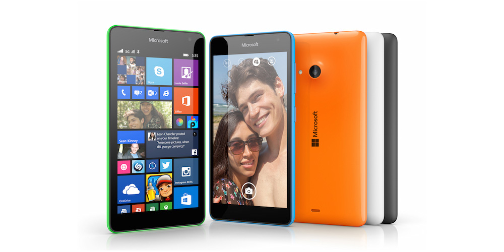 Micosoft Lumia 535 har en 5-tums skärm och vidvinkelkamera med 5 Mp på framsidan. Skärmen har 960 x 540-upplösning och telefonen har Office-paketet och Outlook förinstallerat.